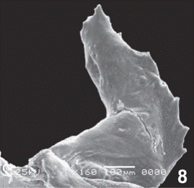 The electronic photographs were made after the dehydration of some larval structures in a graded ethanol series (70-100 %), air dried, and mounted on aluminum stubs and palladium gold covered. Subsequently, the samples were photographed in a JEOL model JSM 5600 LV Scanning electron Microscope.