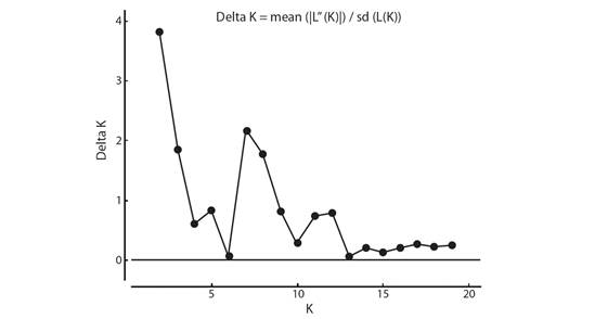 Evanno, G., Regnaut, S., & Goudet, J. (2005). Detecting the number of clusters of individuals using the software STRUCTURE: A simulation study. Molecular Ecology, 14(8), 2611-2620. [ Links ]