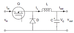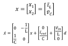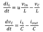 Nótese que en este caso u es discontinua, esto es, solo puede tomar los valores 0 o 1. En algunos casos es conveniente utilizar el modelo promediado del convertidor, descrito por las siguientes ecuaciones:
