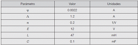 Las condiciones iniciales y los parámetros para el método numérico utilizados se muestran en los Cuadro 2 y Cuadro 3, respectivamente. Los parámetros del subsistema de control utilizados fueron K p= 0.1 y K l= 0.75 con una señal de referencia