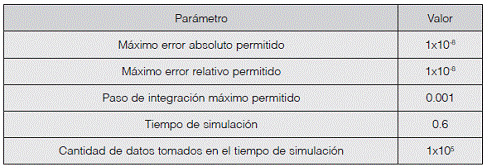 Cuadro 3: Parámetros para el método numérico utilizado para resolver las ecuaciones diferenciales del sistema simulado.