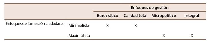 Tabla 1: Cruce de enfoques de formación ciudadana y enfoques de gestión escolar