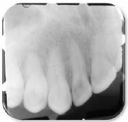 Se solicitó radiografía periapical bisectal de dientes 1.1 al 1.4 (Figura 3) y una radiografía oclusal de la zona (Figura 4). No se observaron alteraciones óseas.