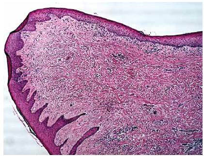Teniendo esta información en cuenta el diagnóstico histopatológico resulta en granuloma piógeno fibrosado.