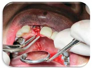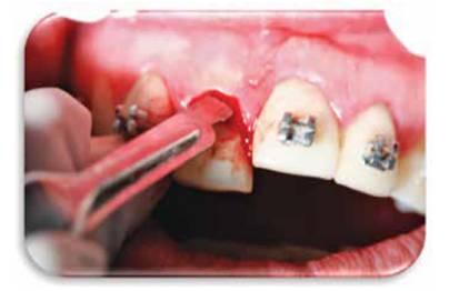 Figura 12: Se muestra la hoja de bisturí aplicada al periodonto para poder realizar la fibrotomía.