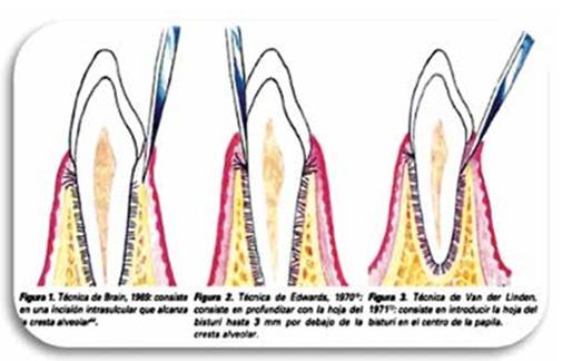 En estudios separados realizados por Brauer10 y Tsopel 40, se efectuaron incisiones verticales en mesial y distal de dientes rotados seccionando las fibras supragingivales. También los autores Edwards15 y Brain8, seccionaron las fibras gingivales introduciendo un bisturí hasta el fondo del surco gingival y analizaron el efecto de las fibras circunferenciales supra gingivales, concluyendo que este procedimiento mejoraba la estabilidad de los dientes rotados. Posteriormente en 1970 Edwards16, realizó en humanos este procedimiento demostrando que esta sencilla técnica mejoraba la estabilidad dental minimizando la recidiva. Años después, Campbell et al.11, designaron el nombre de fibrotomía de las fibras circunferenciales supracrestales a este procedimiento.