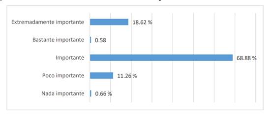 Con relación a la pregunta referida a la valoración sobre el desarrollo del turismo de reuniones y su potencialidad para atraer turistas fuera de la temporada estival (véase Figura 5), el interrogante disponía de las siguientes opciones: 1 (nada importante), 2 (poco importante), 3 (importante), 4 (bastante importante) y 5 (extremadamente importante). El 68,88% de encuestados coincidieron en que dicha modalidad es importante (valoración 3) para atraer turistas fuera de la temporada estival, fundamentalmente por el dinamismo que le imprime al sector económico a lo largo de todo el año. El 18,62% de encuestados le otorgó una valoración de 5; mientras que la valoración 4 fue proporcionada por el 0,58% de encuestados, luego, con una valoración 2, se encontró el 11,26% de las personas; y, por último, con una valoración de 1, el 0,66% (De Simón 2021).