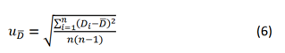 Las incertidumbres asociadas por la posición de la película en el escáner y por la repetibilidad de escaneos, se catalogaron como incertidumbre tipo A y su cálculo lo realizamos mediante la ecuación (JCGM, 2008):