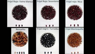 Los frijoles Nica, Sesenteno y Vaina Blanca presentaron semillas de color rojo, aunque en el caso de Nica algunas de sus semillas eran de color rosado (Tabla 1); la única variedad de semillas de color negro fue Turrialba, y la variedad Mantequilla presentó semillas de color beige, aunque algunos mostraron color palo rosa. En el caso de la variedad Revuelto, hallamos semillas de diversos colores. Las variedades Nica y Vaina Blanca mostraron semillas brillantes, mientras que Turrialba y Mantequilla presentaron semillas opacas, y las semillas de Sesenteno fueron intermedias para esta característica.