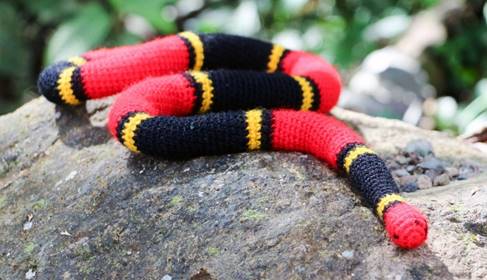 Fotografía 1 Modelo tejido de serpiente coral (Micrurus surinamensis), manduru machacuy en kichwa