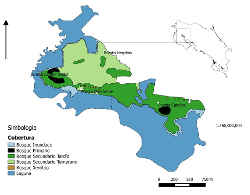 Figure 1 Geographical location and main types of vegetation coverage of the Palo Verde National Park, Guanacaste, Costa Rica.