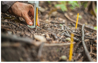 Figure 3 Erosion measurement pins and measurement technique within the Palo Verde National Park, Guanacaste, Costa Rica