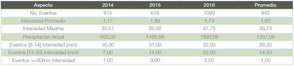 Cerca de la mitad de los eventos lluviosos anuales durante los últimos tres años se registran como eventos con intensidades de lluvia medias y altas.