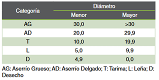 Palabras clave: Categoría comercial; Criterion RD1000; productos forestales; silvicultura; tabla de despiece