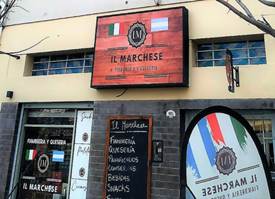 El uso del inglés ostenta, además, otra característica que aumenta su peculiaridad: las denominaciones en las que se lo emplea nunca aparecen acompañadas semióticamente por nada que remita a una procedencia nacional o cultural específica, como sí se registra en cambio en la cartelería bahiense para remitir a las nacionalidades asociadas con las distintas lenguas a través de sus banderas o los colores correspondientes, así como a la cultura mapuche por diseños típicos o guardas, frecuentes en sus textiles14. Ese comparativo desapego de la indexicalización primaria se vincula con el hecho de que, en su función no comunicativa, sino simbólica (v. i.a. Landry y Bourhis, 1997), el significado no referencial que transmiten las denominaciones en inglés sea, en relación con las demás lenguas europeas referidas, el más altamente abstracto: el inglés remite, por, sobre todo, a la novedad. Es por ello que compite con las demás lenguas en casi todos los rubros: la invocación de la novedad es transversalmente útil. Únicamente no puede competir con el mapudungun, que es la lengua elegida por quienes no quieren invocar la novedad, sino, por el contrario, la continuidad temporal: no los avances de la tecnología contemporánea y globalizada, sino el modo tradicional de interactuar con la naturaleza local. Las fotografías que siguen corresponden a emprendimientos comerciales con denominaciones en las lenguas diferentes del español más recurrentemente escogidas, i.e. inglés, italiano y francés (Figuras 3, 4 y 5, respectivamente), y a una tienda de artículos regionales para cuya denominación se ha recurrido al mapudungun (Figura 6).