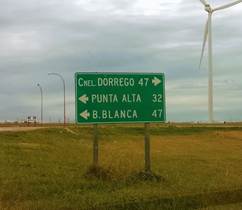 En relación con el paisaje lingüístico rural, los datos que consignamos a continuación provienen de la observación y registro del paisaje lingüístico de unos 1000 kilómetros de vías de tránsito no urbanas extendidas entre Bahía Blanca y distintas localidades del radio circundante, distantes de ella no más de 200 kilómetros y ubicadas en el partido homónimo y en los de Coronel Dorrego, Coronel Pringles, Coronel Rosales, Coronel Suárez, Monte Hermoso, Saavedra, Tornquist y Villarino, en el sudoeste bonaerense, así como en el lindante partido de Tres Arroyos, de la región sudeste (v. i.a.Scavone, 2015, p. 17). El número indicado se distribuyó en unos 500 kilómetros de tránsito sobre rutas nacionales (RN 3 «Comandante Luis Piedrabuena» Norte, RN 3 «Vieja» y RN 33 «Ruta del Desierto Dr. Adolfo Alsina»), 400 kilómetros sobre rutas provinciales (RP 51, RP 67, RP 72, RP 76, RP 78, RP 85, RP 113 y RP 229) y 100 kilómetros sobre accesos, desde las rutas citadas, a diversos pueblos, ciudades y centros turísticos: Aparicio, Arroyo Corto, Bajo Hondo, Cascada Cifuentes, Coronel Dorrego, Coronel Pringles, Cura Malal, Dufaur, El Perdido, Fortín Mercedes, La Salada, Micaela Cascallares, Pueblo Santa María, Saavedra, Tornquist -y su balneario Parque Norte-, Reta, Villa del Mar y Villa Ventana.
