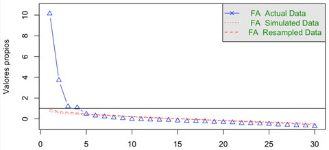Figura 1 Gráfico de sedimentación para el SAT-36, luego de eliminar los ítems 11, 22, 24, 30, 34 y 36