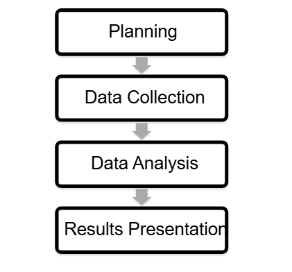 To evaluate the effectiveness of the tools used, a method structured in four phases will be followed: planning, data collection, data analysis, and presentation of results, as detailed below.