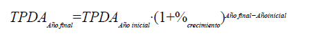 Respecto al TPDA, se toma como base el Anuario de información de tránsito 2020, ya que este reporta el valor de TPDA levantado del año 2019 hacia atrás. Luego, se procede a determinar el valor del porcentaje de crecimiento, por lo que se revisa el anuario que reporte este valor más cercano al periodo de estudio; por lo tanto, se emplean los valores del Anuario de información de tránsito 2015.