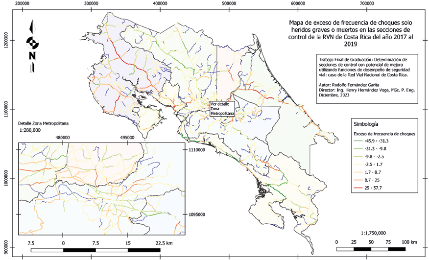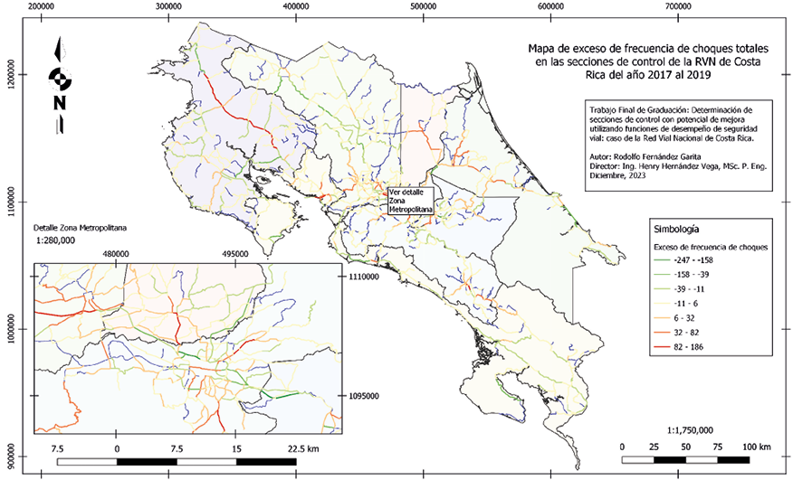 El objetivo de la investigación es determinar las secciones de control con potencial de mejora en la Red Vial Nacional de Costa Rica, utilizando el método de exceso de frecuencia de choques esperado con el ajuste de Bayes empírico, lo cual permita a la administración generar planes específicos de seguridad vial que busquen reducir la severidad y frecuencia de los choques viales.