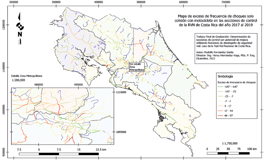 It is advisable to generate plans to improve road safety in the control sections with the highest excess frequency of expected crashes, since they represent a greater potential for improvement in terms of road safety. On the other hand, it is recommended to study the control sections with lower excess frequency of expected crashes, in order to know the conditions that prevail at these sites.
