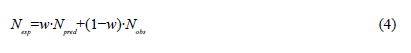 Posteriormente, para el cálculo de la frecuencia de choques esperados total, se emplea (4), en donde Nobs corresponde a la cantidad de choques observados.