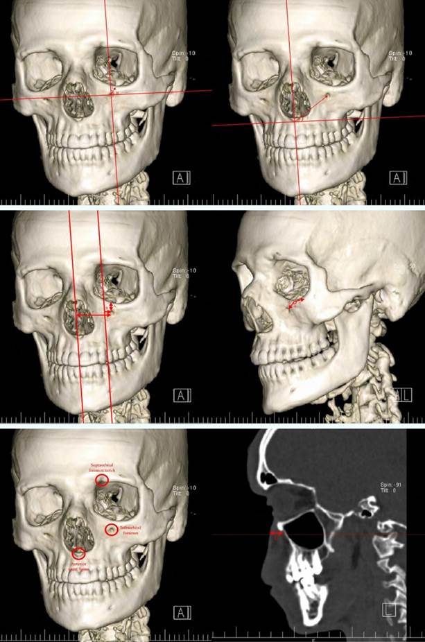 The exclusion criteria were CT scans of patients with facial fractures or asymmetries, or presence of artifacts preventing accurate measurements.
