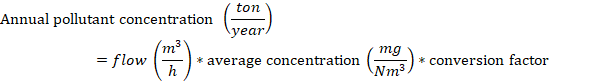 Equation 1. Determining the annual pollutant concentration in tons/year