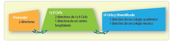 La selección de este grupo de informantes se hace para obtener una muestra representativa de cada uno de los diferentes ciclos del sistema educativo público costarricense, de manera que se pueda alcanzar una mirada más amplia, desde diversas perspectivas, de la realidad que experimentan los centros educativos en tiempos de pandemia.