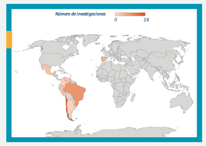 En el Figura 1 se muestra el perfil geográfico del desarrollo y concentración de las investigaciones. Se reconoce que los libros de texto de educación primaria de Chile (16 estudios primarios) y Brasil (8 estudios primarios) han sido los más analizados. Además, se identifican los países donde las investigaciones del estudio ha sido poca o nula; esto abre líneas de acción para aquellos que se interesen en seguir explorando. Por otro lado, algo interesante a explorar sería: ¿cuál ha sido el impacto de estas investigaciones en las políticas educativas?, ¿los resultados de estas investigaciones se han utilizado para diseñar o rediseñar los libros de texto?, ¿por qué el poco o nulo interés por explorar en algunos países?, ¿será que la importancia de la cultura estadística no ha impactado los currículos de estos países